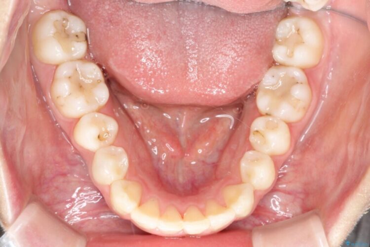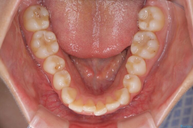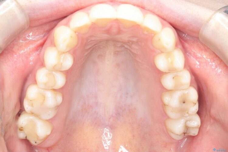 全体的に少し内側へ傾斜しているのが確認できました。そのため歯列弓が狭まり噛み合わせにも影響しています。