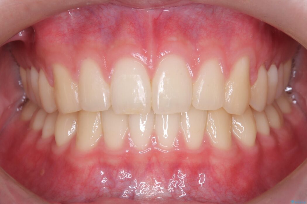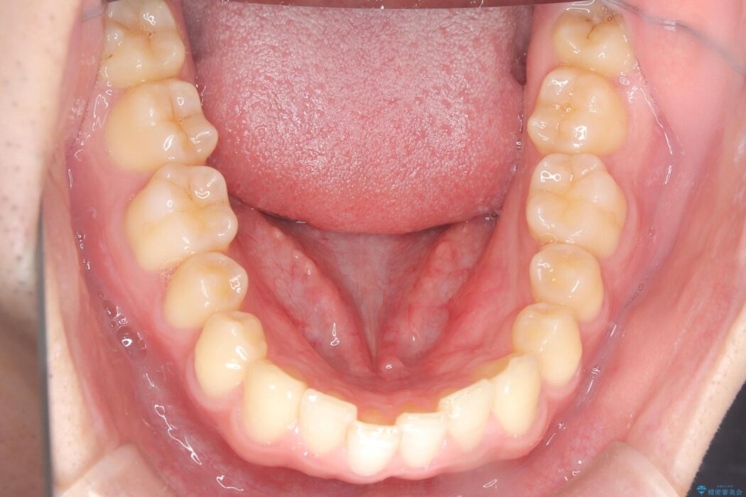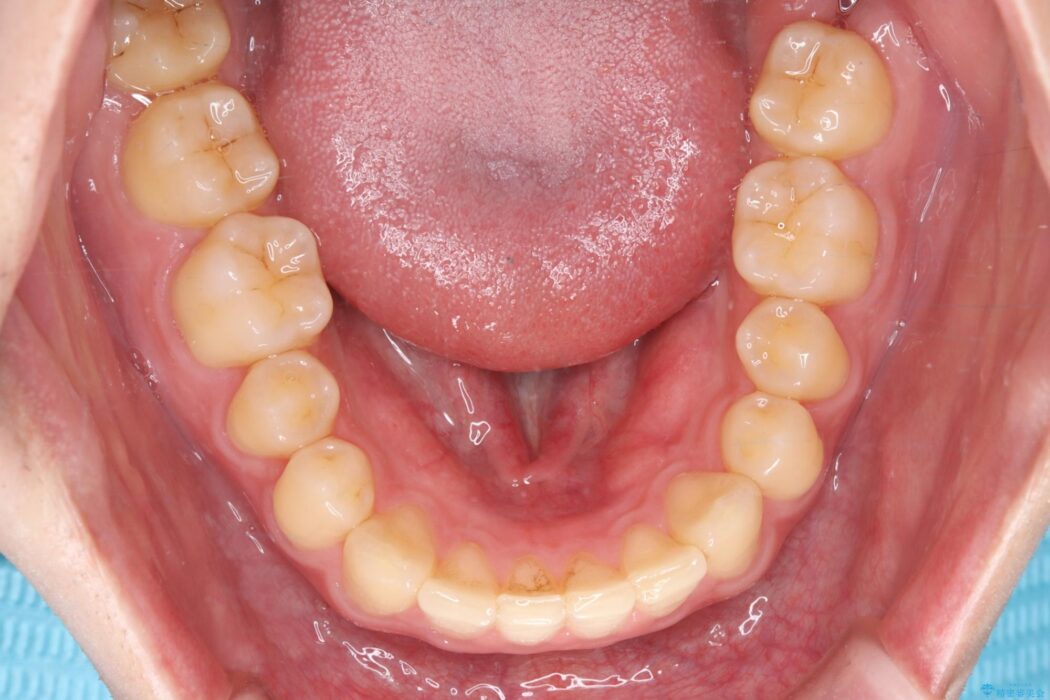 下顎の舌側傾斜気味の前歯も唇側へ歯軸傾斜させています。