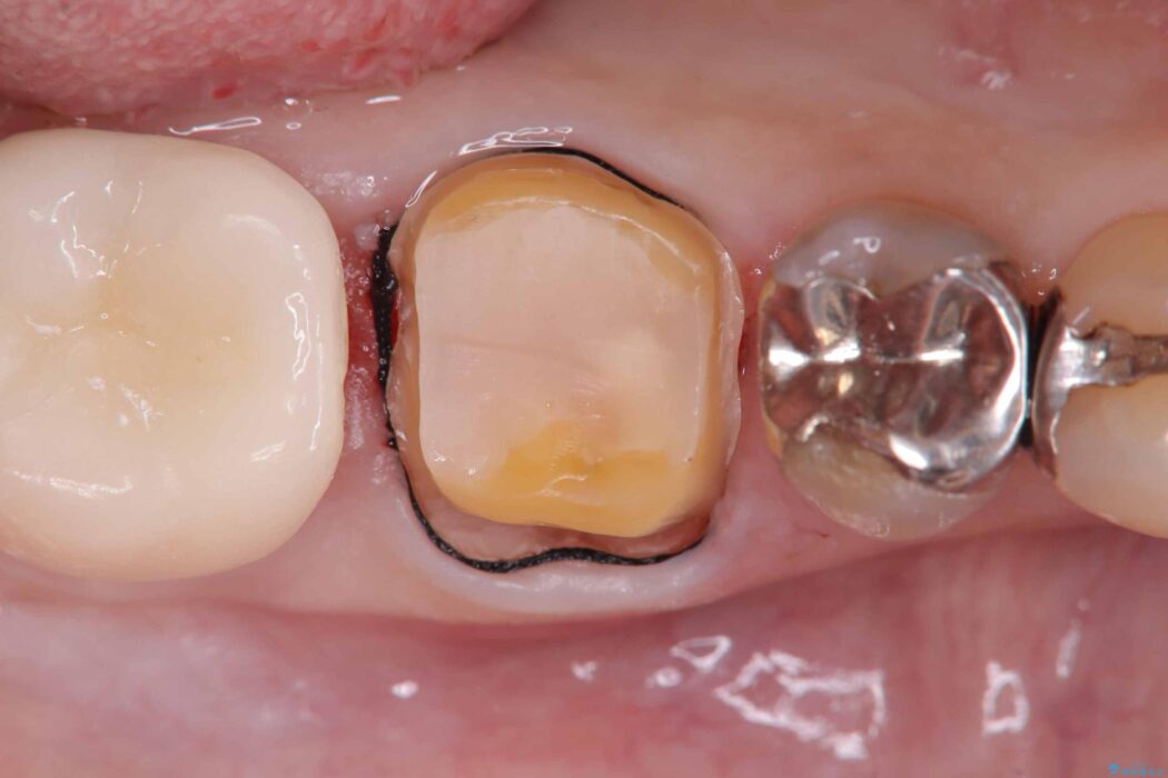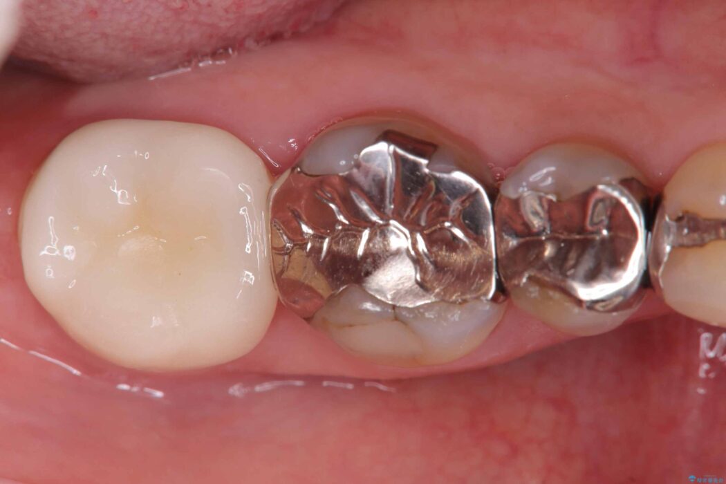 まず銀歯を除去し、丁寧に虫歯を取り除きました。その後、オールセラミッククラウンで修復しました。