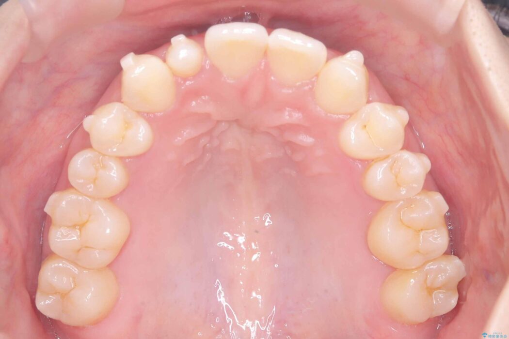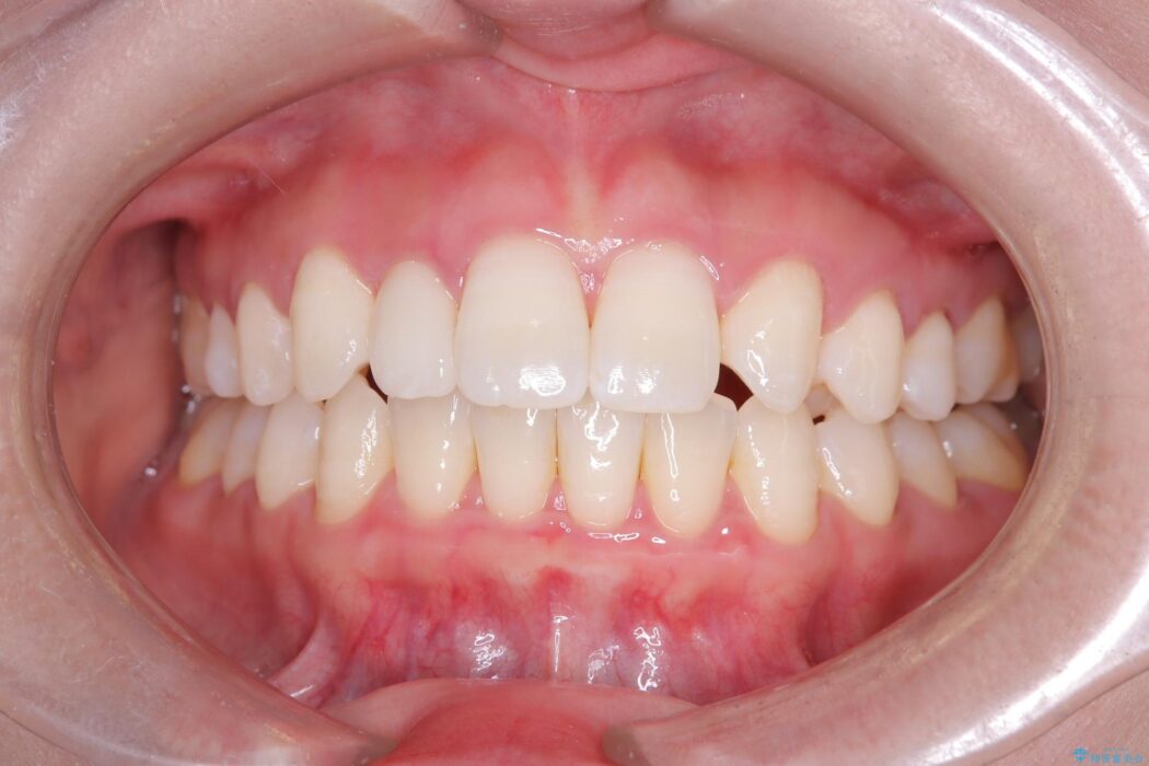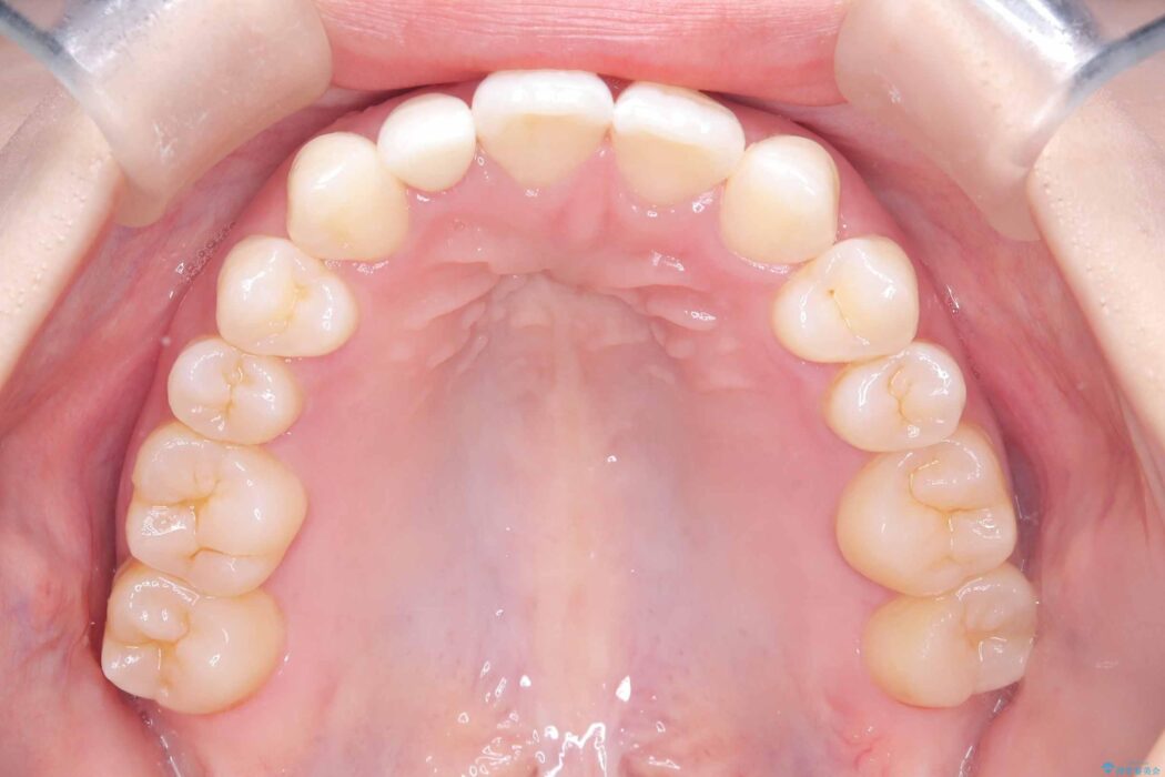 矯正治療後、右上2番はオールセラミッククラウンにより、形態回復と審美性の向上を実現しました。