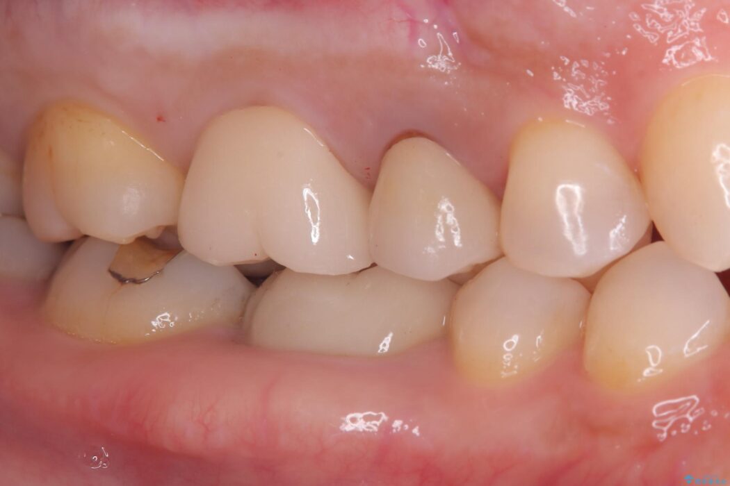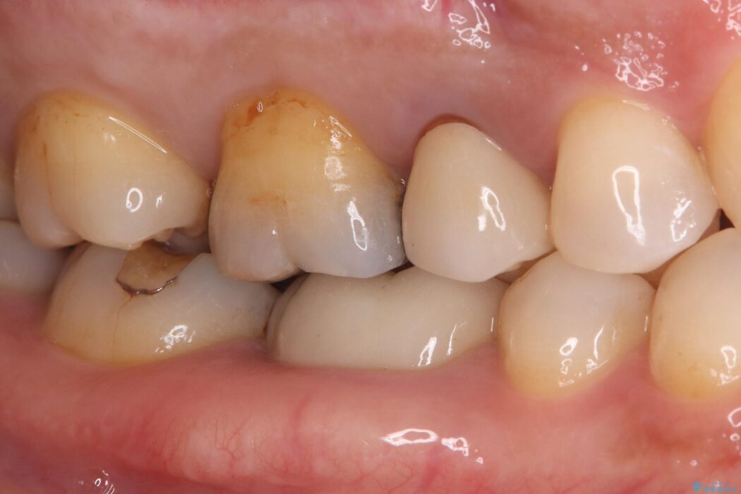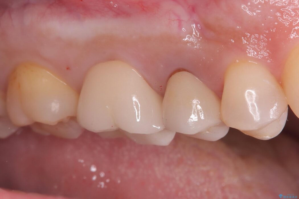 その後、残りの歯を保護して強度を上げるため、適合性が高いオールセラミッククラウンの作成・装着を行いました。
