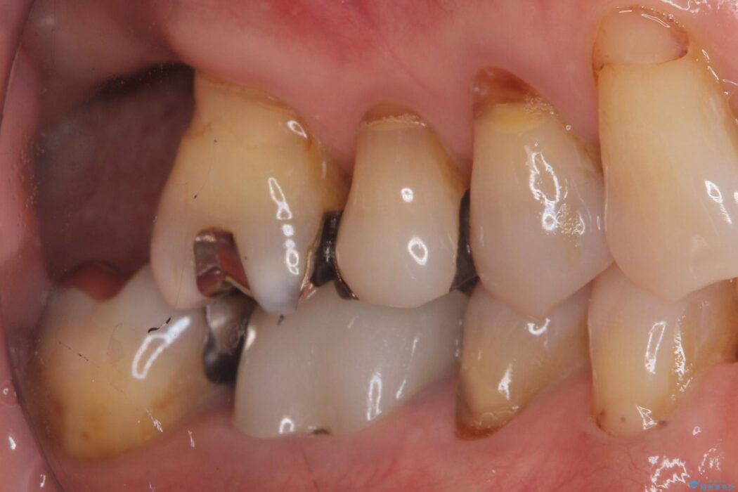 右上の奥歯(6番)が重度の歯周病により保存困難な状態であること、およびその後ろの7番もすでに失われていることを主訴にご来院されました。