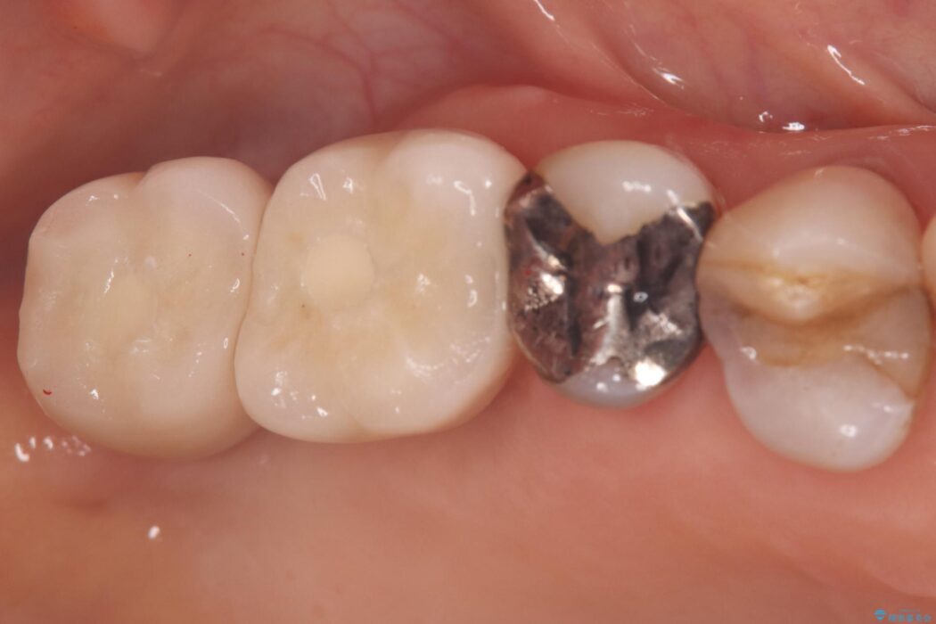 インプラントと骨がしっかりと結合するのを待ってから、最終的な被せ物(クラウン)を装着。これにより、重度歯周病で失われた2本の奥歯を、強固で安定したインプラントで再建。以前のような不安なく、しっかりと噛める快適な食生活を取り戻していただけました。