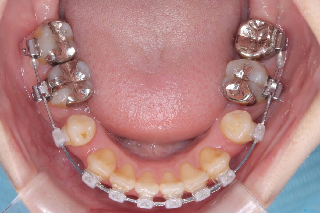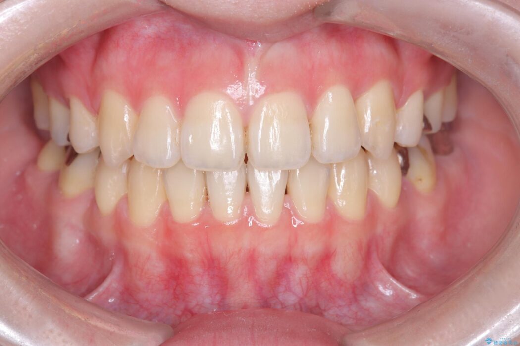 精密検査の結果、上顎左右4番および下顎左右5番の計4本を抜歯し、目立ちにくいクリア装置にて治療を行いました。