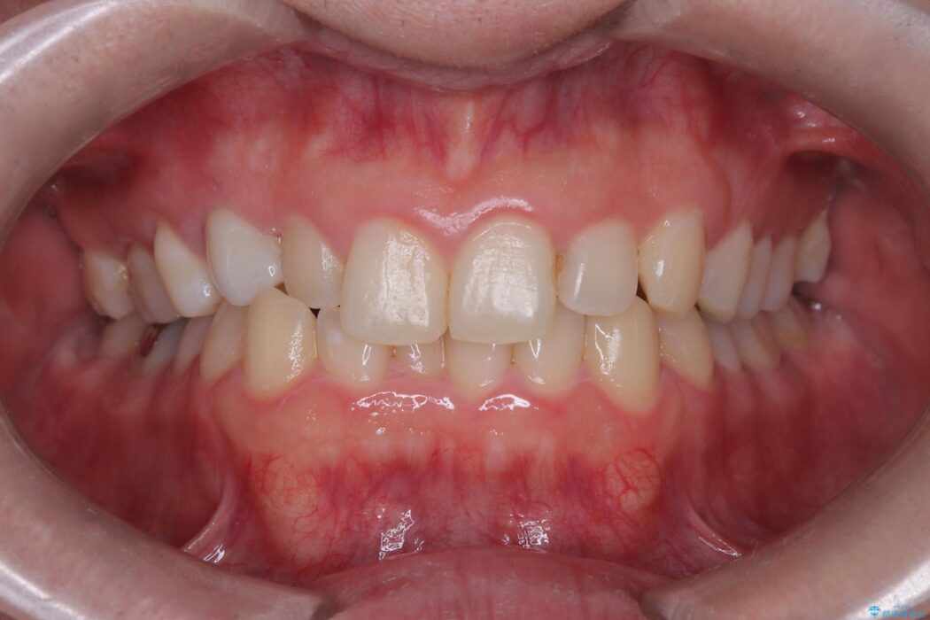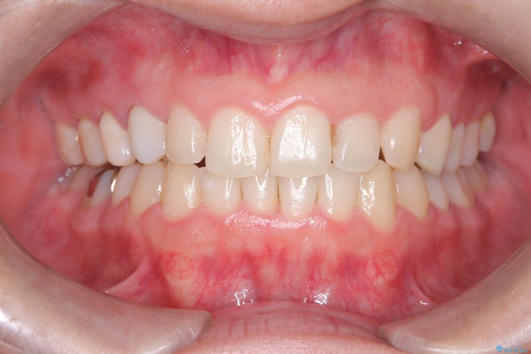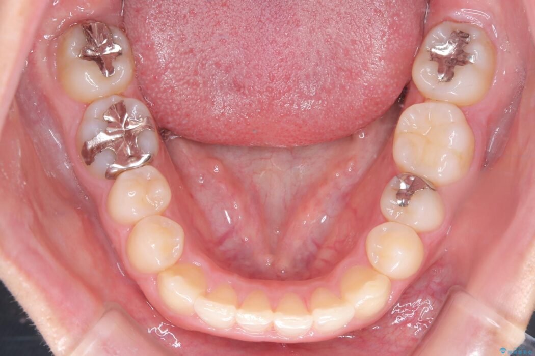 内側に入っていた前歯を、マウスピースの力を利用して外側へ押し出しました。同時に、下顎の歯並びも微調整することで、スムーズに正常な噛み合わせへと誘導しました。