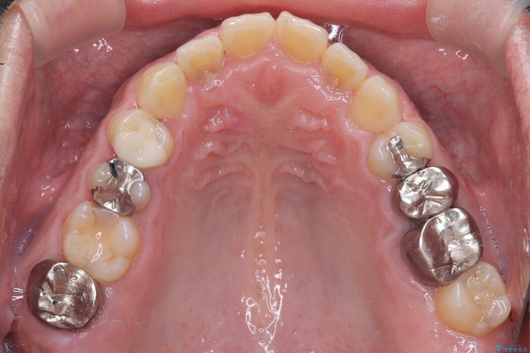 長年使用してきた複数の銀歯は、経年劣化により適合が悪くなっており、一部では内部で虫歯の再発も認められました。