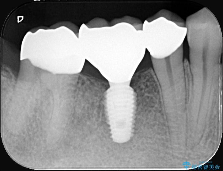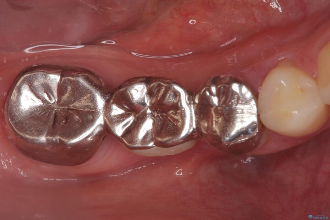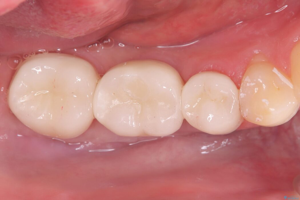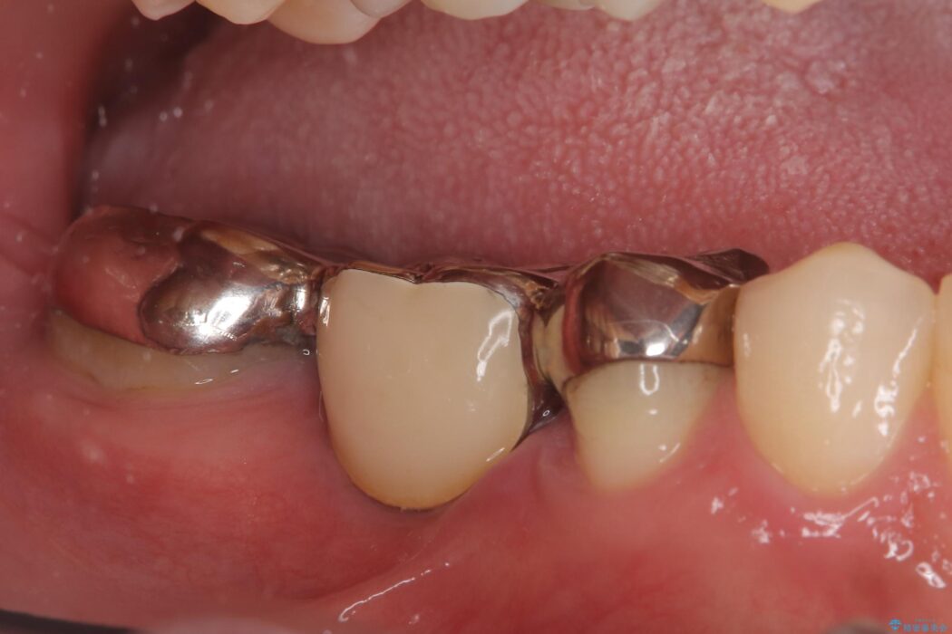 ブリッジは汚れが溜まりやすく、土台となる歯への負担も大きいため、患者様の希望に合わせそれぞれの歯をインプラント治療で独立させる治療計画を立てました。