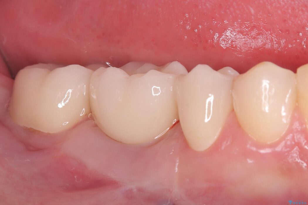 インプラント周囲の歯肉が薄かったため、FGG(遊離歯肉移植術)を行い、長期安定に不可欠な「角化歯肉」を確保しました。