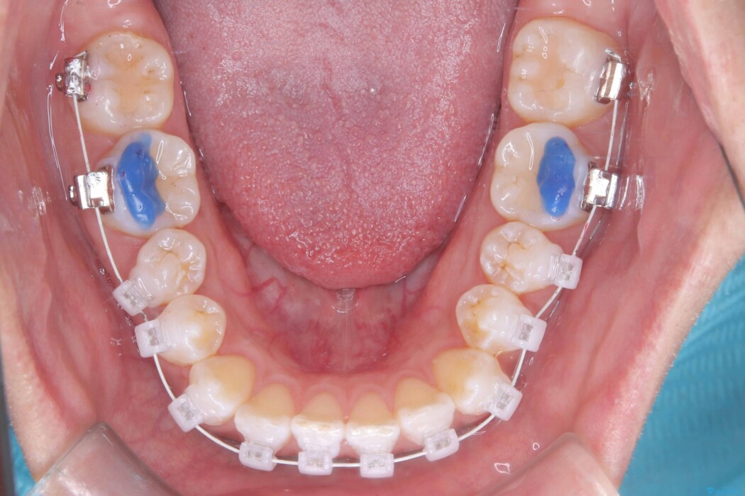 装置は、白いコーティングが施された審美性の高いワイヤーを使用しています。