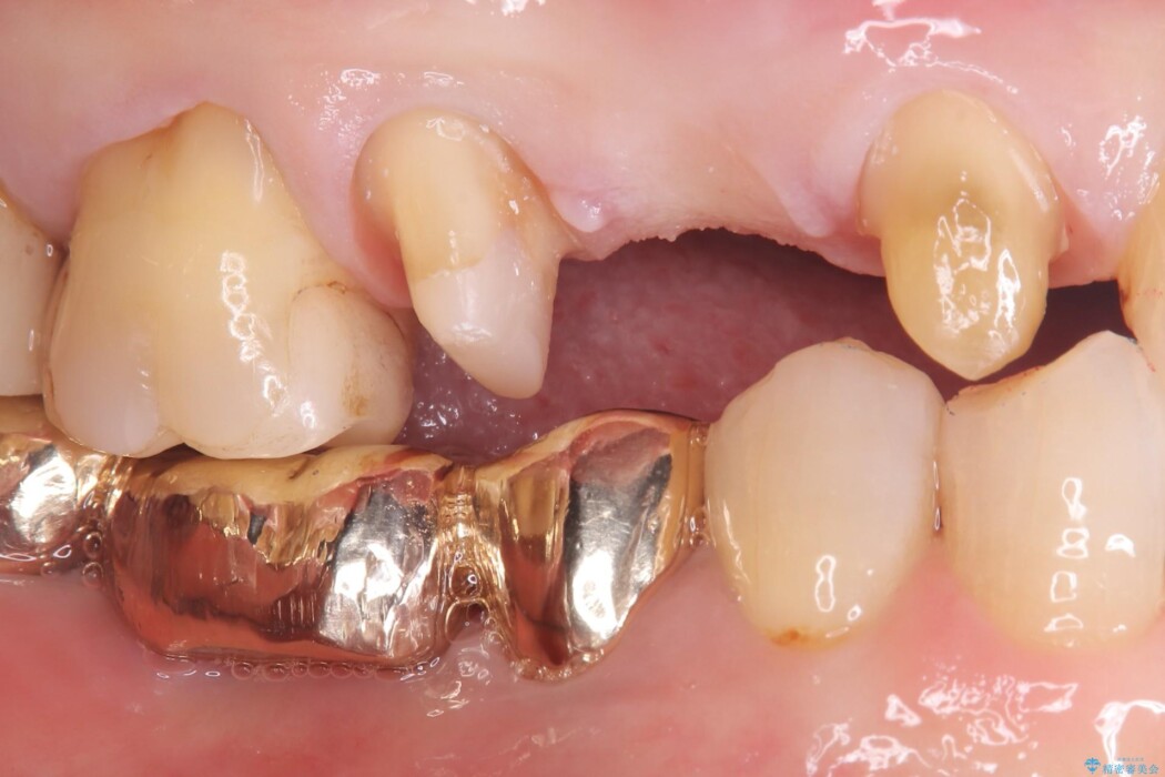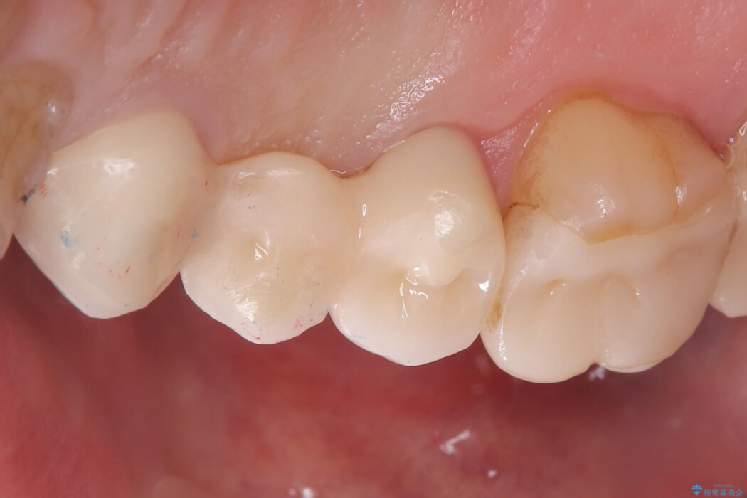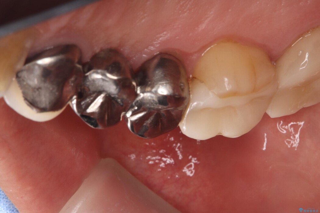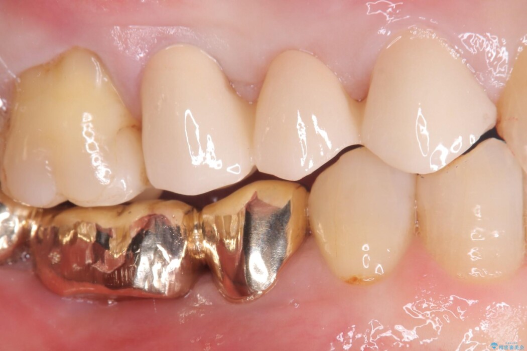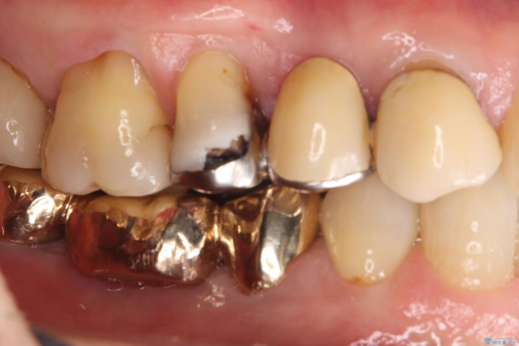 右上⑤4③にはメタルフレームを用いたブリッジが入っており、右上5番目の歯が虫歯により欠けている状態でした。