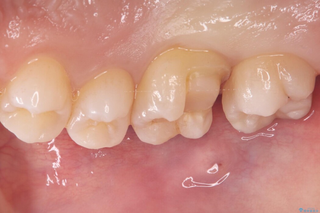 右上6番の舌側が欠けてしまっている状態でした。