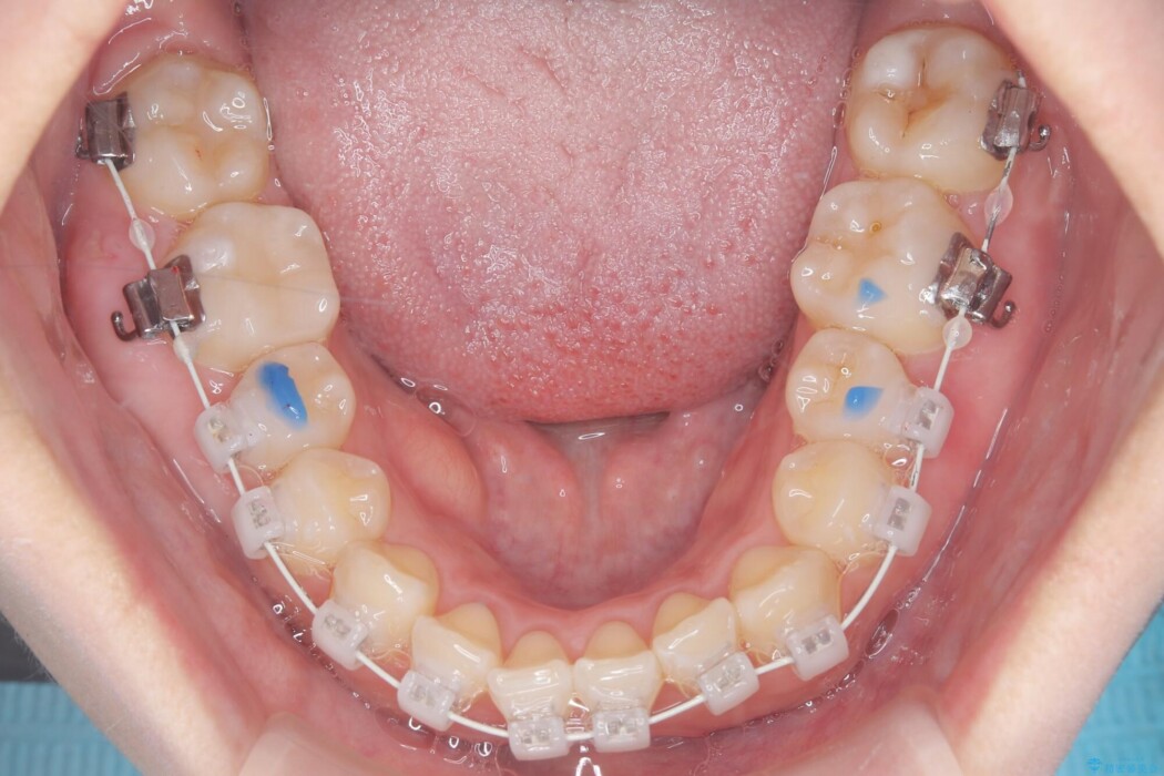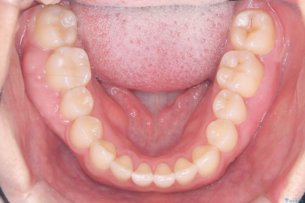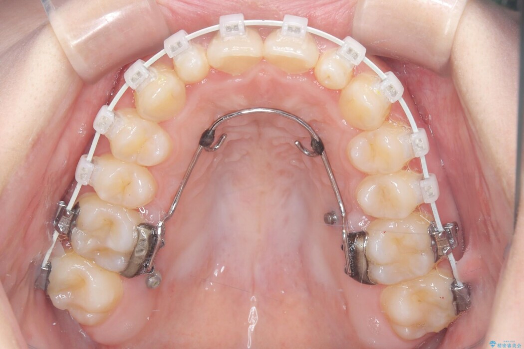 そのため抜歯を行わずにスペースを調整し、矮小歯のサイズに合わせて上下の噛み合わせを構成する「2級仕上げ(上の歯列が下の歯列に対してやや前方にある状態)」での完了を目指す計画を立案しました。