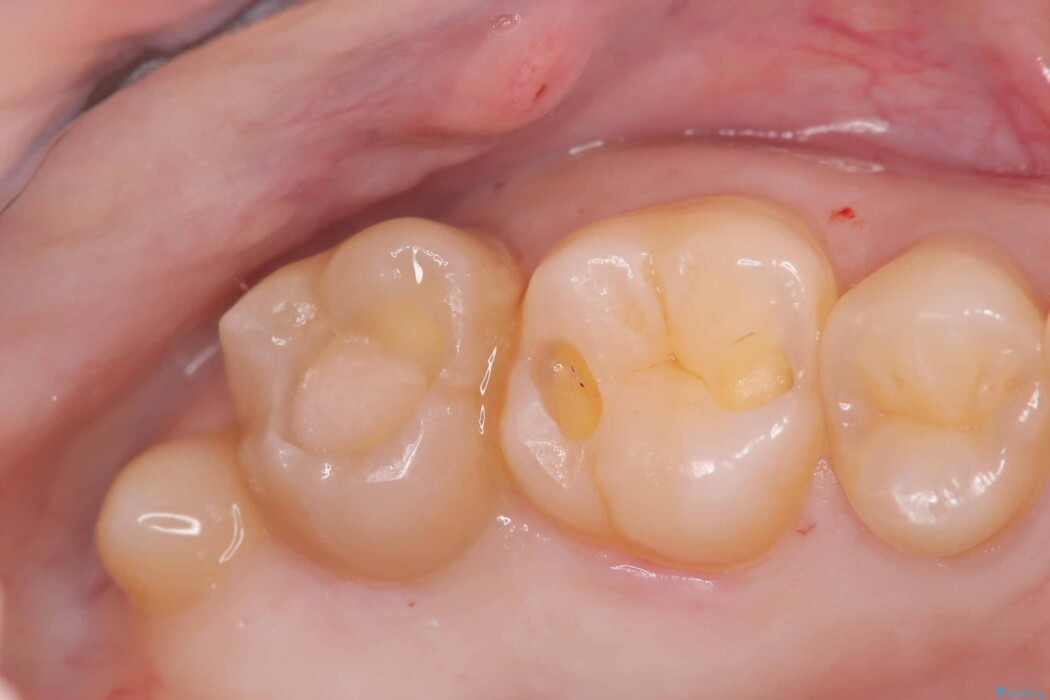 除去後は、再発リスクを抑え長期的な安定を図るために、適合精度が高く劣化しにくいセラミックインレーによる修復を計画しました。